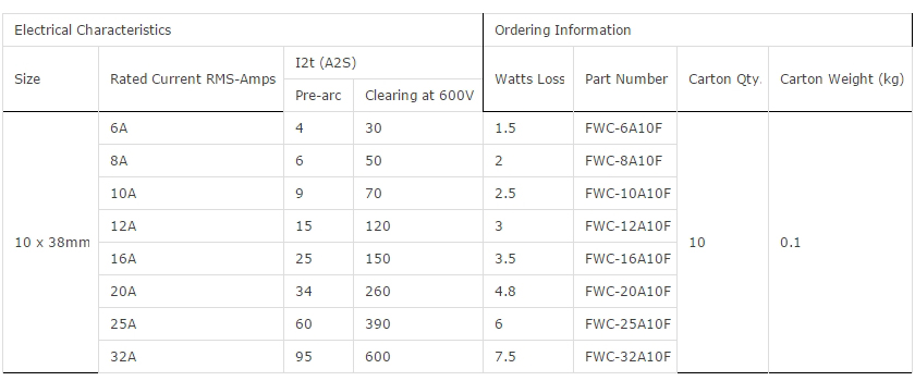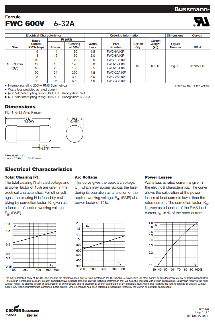 - (700 Vdc/Interrupting rating 50kA) U.L. Recognition: 6 - 25A