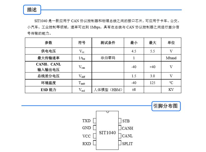 所属分类:CAN通道数:1电源/V:4.5~5.5容错电压/V:-40~40共模范围/V:-12~12速率/Mbps:1低功耗模式:StandbyHBM ESD(kV):8接触放电/KV:4隔离:No工作温度/℃:-40~125封装:SOP8状态:Active