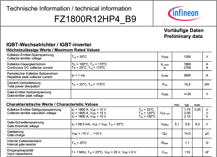 参数:1800A , 1200V , IGBT4