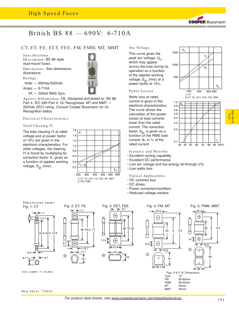 CE, Designed and tested to: BS 88 Part 4, IEC 269 Part 4, UL Recognized. Consult Cooper BussmannOR Bolfmax for UL Recognition status.