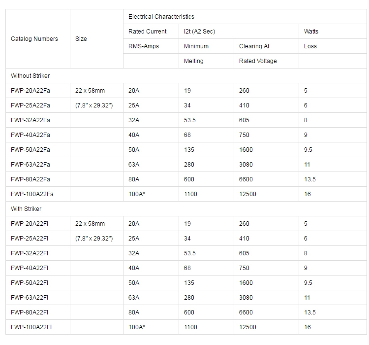 FWP 690V/700V (22x58mm) Ferrule High speed fuses,Striker Optional