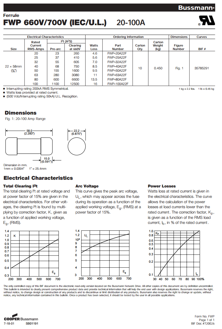 Eaton’s Bussmann series FWP 22x58 mm class aR fuses provide short-circuit protection and are used to protect AC/DC drives and semi conductors.